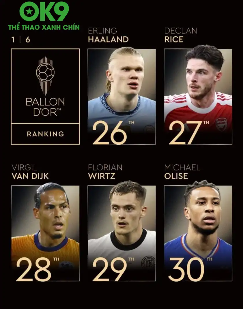 Sau khi màn tranh tài nảy lửa kết thúc, OK9 COOL xin được hé lộ phần còn lại của bảng xếp hạng Quả bóng Vàng 2025, từ vị trí 11 đến 30. Đây là lúc để anh em mình cùng điểm mặt gọi tên những “ngựa ô” bất ngờ, những tài năng trẻ đầy triển vọng đã để lại dấu ấn mạnh mẽ trong lòng người hâm mộ.