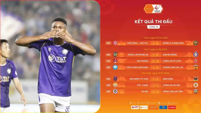 Vòng 18 V-League 2025/26 đã chính thức khép lại với những kịch bản không tưởng, khiến cục diện ở cả hai đầu bảng xếp hạng đảo lộn hoàn toàn. Đối với anh em đam mê sân cỏ nội, đây thực sự là một vòng đấu “rửa mắt” với đầy rẫy những bất ngờ. Để không bỏ lỡ bất kỳ nhịp đập nào của bóng đá nước nhà, OK9 luôn đồng hành cùng các chiến hữu trong việc cập nhật những diễn biến nóng hổi và phân tích chuyên sâu nhất về kèo đấu.